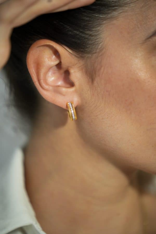 עגילי יהלום בצורת חישוק, אלגנטיים ונצחיים בחיתוך ייחודי ועיצוב שנעשה מתוך חשיבה על סטייל, נוחות וניראות.