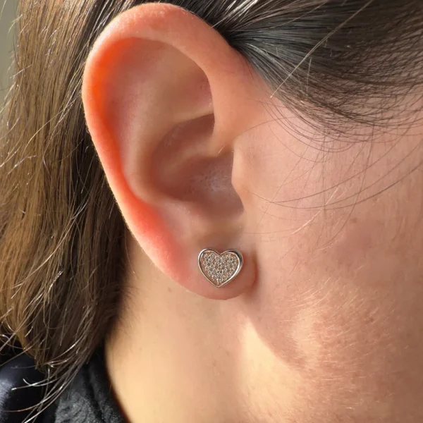 עגילי לב צמודים יהלומים – היהלומים ממוסגרים במסגרת משובצת בסגנון לב כרומו מבריק!